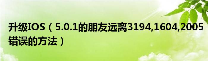 大家好,今天小悦来为大家解答以上问题。升级IOS,5.0.1的朋友远离3194,1604,2005错误的方法很多人还不知道,现在让我们一起来看看吧!