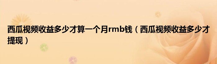 大家好,跳跳为你解答以上问题。西瓜视频收益多少才算一个月rmb钱,西瓜视频收益多少才提现这个问题很多人还不知道,现在让我们一起来看看吧!