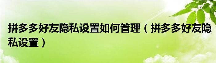 大家好,跳跳为你解答以上问题。拼多多好友隐私设置如何管理,拼多多好友隐私设置这个问题很多人还不知道,现在让我们一起来看看吧!