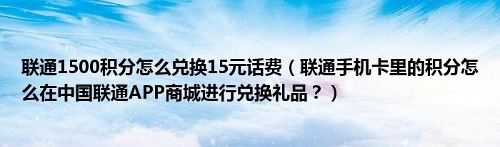 大家好,小太来为大家解答以上问题。联通1500积分怎么兑换15元话费,联通手机卡里的积分怎么在中国联通APP商城进行兑换礼品?很多人还不知道,现在让我们一起来看看吧!