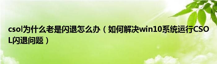 csol为什么老是闪退怎么办(如何解决win10系统运行CSOL闪退问题)