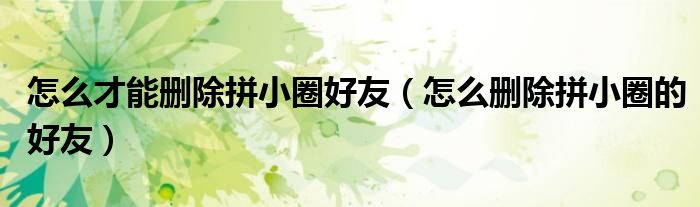 大家好,跳跳为你解答以上问题。怎么才能删除拼小圈好友,怎么删除拼小圈的好友这个问题很多人还不知道,现在让我们一起来看看吧!