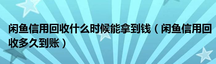 大家好,跳跳为你解答以上问题。闲鱼信用回收什么时候能拿到钱,闲鱼信用回收多久到账这个问题很多人还不知道,现在让我们一起来看看吧!
