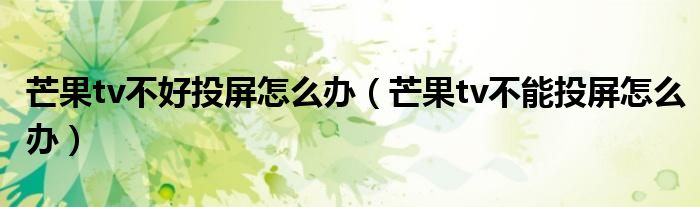 大家好,跳跳为你解答以上问题。芒果tv不好投屏怎么办,芒果tv不能投屏怎么办这个问题很多人还不知道,现在让我们一起来看看吧!