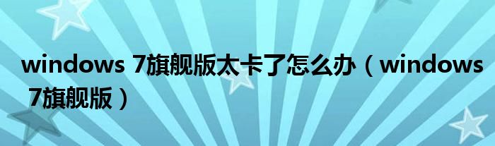 大家好,慧慧来为大家解答以上问题,windows 7旗舰版太卡了怎么办,windows 7旗舰版很多人还不知道,现在让我们一起来看看吧!
