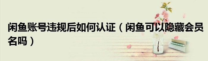 大家好,跳跳为你解答以上问题。闲鱼账号违规后如何认证,闲鱼可以隐藏会员名吗这个问题很多人还不知道,现在让我们一起来看看吧!