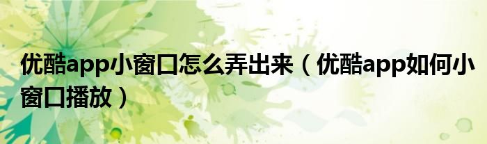 大家好,跳跳为你解答以上问题。优酷app小窗口怎么弄出来,优酷app如何小窗口播放这个问题很多人还不知道,现在让我们一起来看看吧!