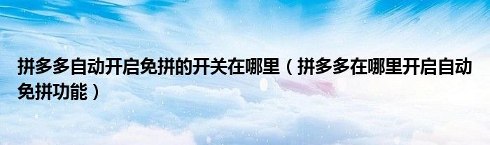 大家好,跳跳为你解答以上问题。拼多多自动开启免拼的开关在哪里,拼多多在哪里开启自动免拼功能这个问题很多人还不知道,现在让我们一起来看看吧!