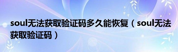 大家好,跳跳为你解答以上问题。soul无法获取验证码多久能恢复,soul无法获取验证码这个问题很多人还不知道,现在让我们一起来看看吧!
