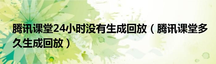大家好,跳跳为你解答以上问题。腾讯课堂24小时没有生成回放,腾讯课堂多久生成回放这个问题很多人还不知道,现在让我们一起来看看吧!