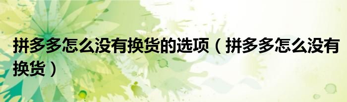 大家好,跳跳为你解答以上问题。拼多多怎么没有换货的选项,拼多多怎么没有换货这个问题很多人还不知道,现在让我们一起来看看吧!
