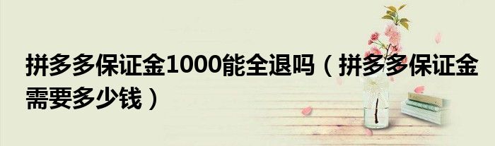 大家好,跳跳为你解答以上问题。拼多多保证金1000能全退吗,拼多多保证金需要多少钱这个问题很多人还不知道,现在让我们一起来看看吧!