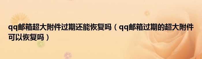 大家好,跳跳为你解答以上问题。qq邮箱超大附件过期还能恢复吗,qq邮箱过期的超大附件可以恢复吗这个问题很多人还不知道,现在让我们一起来看看吧!
