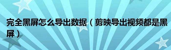 大家好,跳跳为你解答以上问题。完全黑屏怎么导出数据,剪映导出视频都是黑屏这个问题很多人还不知道,现在让我们一起来看看吧!