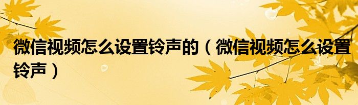 微信视频怎么设置铃声?