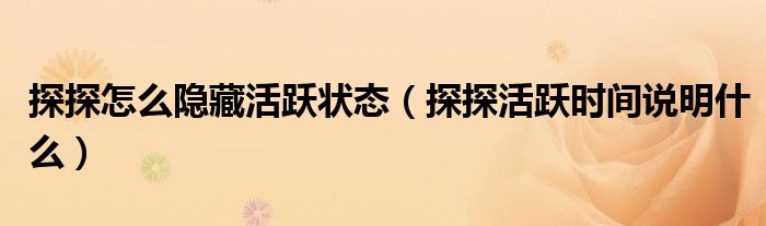 大家好,跳跳为你解答以上问题。探探怎么隐藏活跃状态,探探活跃时间说明什么这个问题很多人还不知道,现在让我们一起来看看吧!
