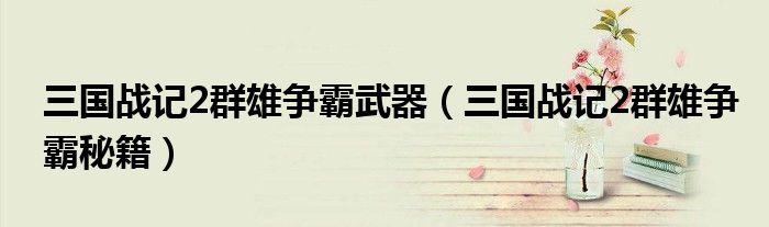 三国战记2群雄争霸武器(三国战记2群雄争霸秘籍)