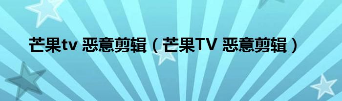 大家好,慧慧来为大家解答以上问题,芒果tv 恶意剪辑,芒果TV 恶意剪辑很多人还不知道,现在让我们一起来看看吧!