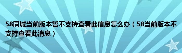 大家好,跳跳为你解答以上问题。58同城当前版本暂不支持查看此信息怎么办,58当前版本不支持查看此消息这个问题很多人还不知道,现在让我们一起来看看吧!