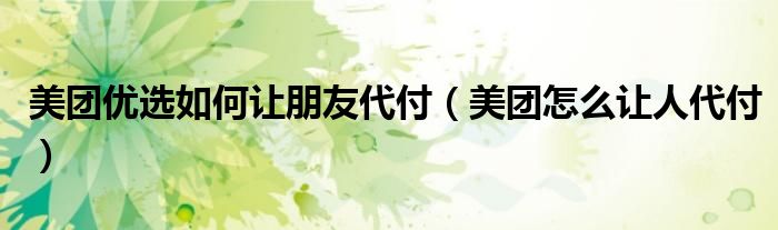 大家好,跳跳为你解答以上问题。美团优选如何让朋友代付,美团怎么让人代付这个问题很多人还不知道,现在让我们一起来看看吧!