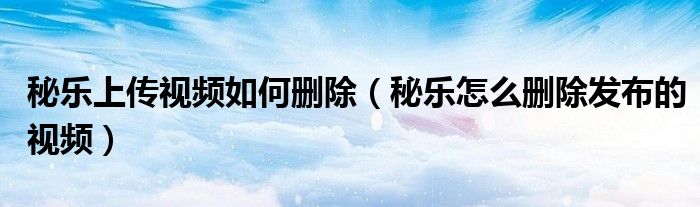 秘乐上传视频如何删除(秘乐怎么删除发布的视频)