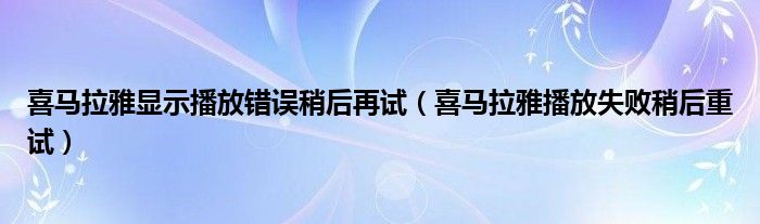 大家好,跳跳为你解答以上问题。喜马拉雅显示播放错误稍后再试,喜马拉雅播放失败稍后重试这个问题很多人还不知道,现在让我们一起来看看吧!