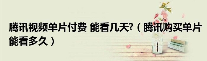 大家好,跳跳为你解答以上问题。腾讯视频单片付费 能看几天?,腾讯购买单片能看多久这个问题很多人还不知道,现在让我们一起来看看吧!
