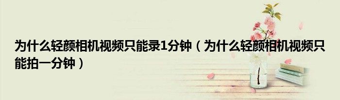 大家好,跳跳为你解答以上问题。为什么轻颜相机视频只能录1分钟,为什么轻颜相机视频只能拍一分钟这个问题很多人还不知道,现在让我们一起来看看吧!