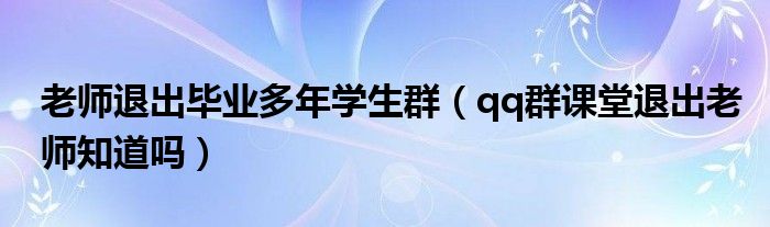大家好,跳跳为你解答以上问题。老师退出毕业多年学生群,qq群课堂退出老师知道吗这个问题很多人还不知道,现在让我们一起来看看吧!