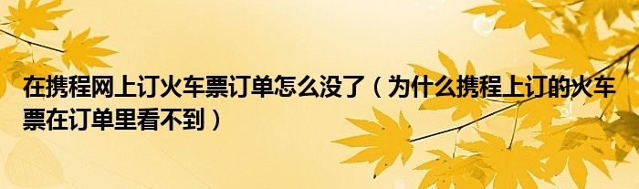 大家好,跳跳为你解答以上问题。在携程网上订火车票订单怎么没了,为什么携程上订的火车票在订单里看不到这个问题很多人还不知道,现在让我们一起来看看吧!