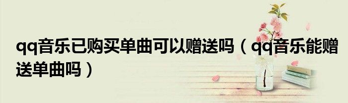 解答:1、Qq可以赠送单身。如果想赠送单曲,可以在qq音乐主页面找到购买成功的专辑,然后点击赠送。