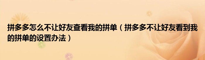 拼多多怎么不让好友查看我的拼单(拼多多不让好友看到我的拼单的设置办法)