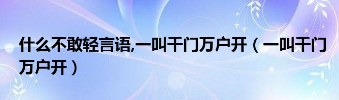 大家好,小晋来为大家解答以下问题,关于什么不敢轻言语,一叫千门万户开,一叫千门万户开很多人还不知道,今天让我们一起来看看吧!