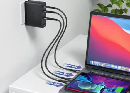 “在LaucoChargehub中,我们将115WGaN充电器和4合1集线器合二为一,它是您任何充电器和集线器的终极替代品。您可以使用它为设备充电、传输数据和扩展显示。它旨在为您的笔记本电脑、平板电脑、智能手机、NintendoSwitch等提供完美的多合一解决方案。”