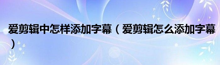 大家好,小晋来为大家解答以下问题,关于爱剪辑中怎样添加字幕,爱剪辑怎么添加字幕很多人还不知道,今天让我们一起来看看吧!
