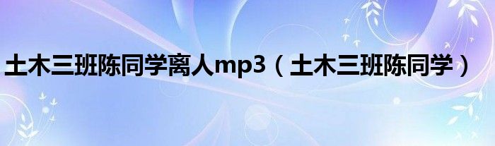大家好,小晋来为大家解答以下问题,关于土木三班陈同学离人mp3,土木三班陈同学很多人还不知道,今天让我们一起来看看吧!