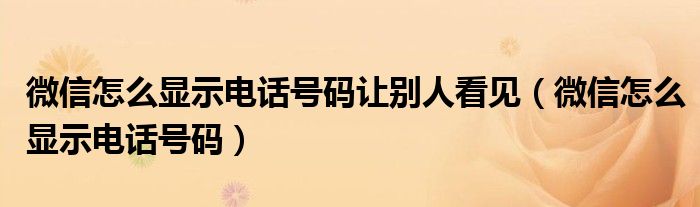 大家好,小晋来为大家解答以下问题,关于微信怎么显示电话号码让别人看见,微信怎么显示电话号码很多人还不知道,今天让我们一起来看看吧!