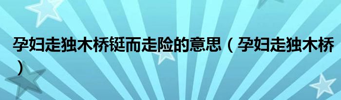 大家好,小晋来为大家解答以下问题,关于孕妇走独木桥铤而走险的意思,孕妇走独木桥很多人还不知道,今天让我们一起来看看吧!