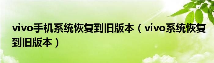 大家好,小晋来为大家解答以下问题,关于vivo手机系统恢复到旧版本,vivo系统恢复到旧版本很多人还不知道,今天让我们一起来看看吧!