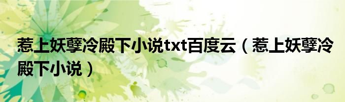 大家好,小晋来为大家解答以下问题,关于惹上妖孽冷殿下小说txt百度云,惹上妖孽冷殿下小说很多人还不知道,今天让我们一起来看看吧!