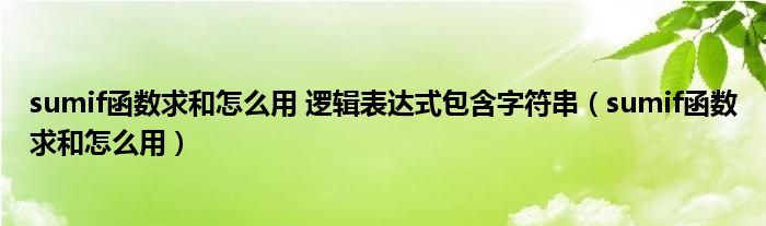 sumif函数求和怎么用 逻辑表达式包含字符串(sumif函数求和怎么用)