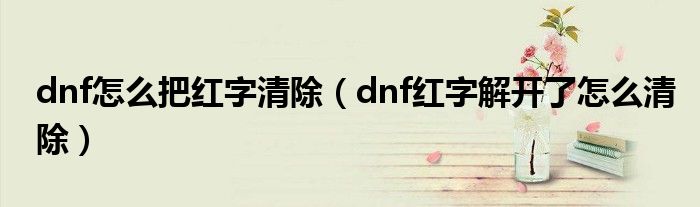 大家好,小晋来为大家解答以下问题,关于dnf怎么把红字清除,dnf红字解开了怎么清除很多人还不知道,今天让我们一起来看看吧!