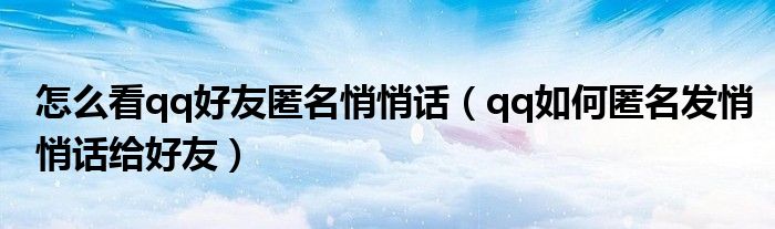 怎么看qq好友匿名悄悄话(qq如何匿名发悄悄话给好友)