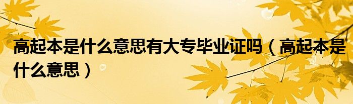 关于高起本是什么意思有大专毕业证吗,高起本是什么意思这个很多人还不知道,今天菲菲来为大家解答以上的问题,现在让我们一起来看看吧!