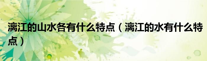 大家好,小晋来为大家解答以下问题,关于漓江的山水各有什么特点,漓江的水有什么特点很多人还不知道,今天让我们一起来看看吧!