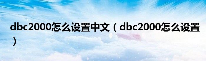 关于dbc2000怎么设置中文,dbc2000怎么设置这个很多人还不知道,今天菲菲来为大家解答以上的问题,现在让我们一起来看看吧!