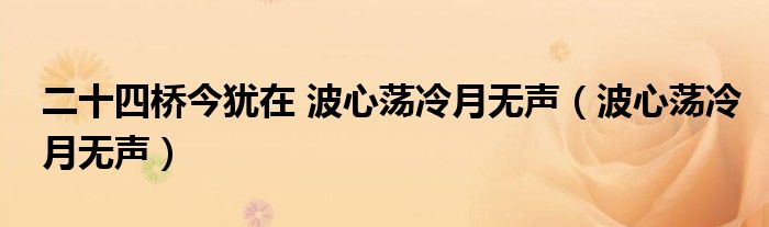 关于二十四桥今犹在 波心荡冷月无声,波心荡冷月无声这个很多人还不知道,今天菲菲来为大家解答以上的问题,现在让我们一起来看看吧!