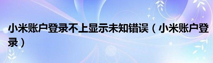 大家好,小晋来为大家解答以下问题,关于小米账户登录不上显示未知错误,小米账户登录很多人还不知道,今天让我们一起来看看吧!