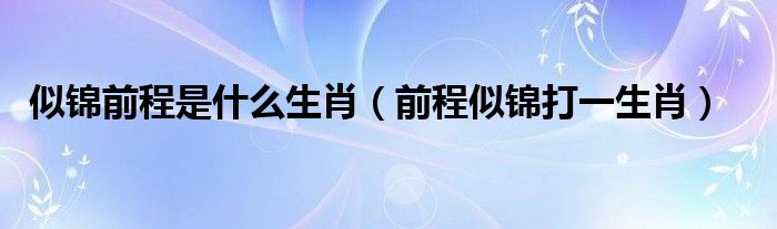 大家好,小晋来为大家解答以下问题,关于似锦前程是什么生肖,前程似锦打一生肖很多人还不知道,今天让我们一起来看看吧!