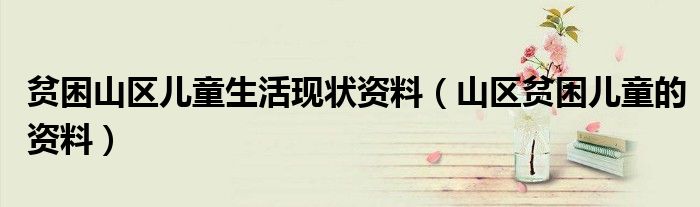 关于贫困山区儿童生活现状资料,山区贫困儿童的资料这个很多人还不知道,今天菲菲来为大家解答以上的问题,现在让我们一起来看看吧!